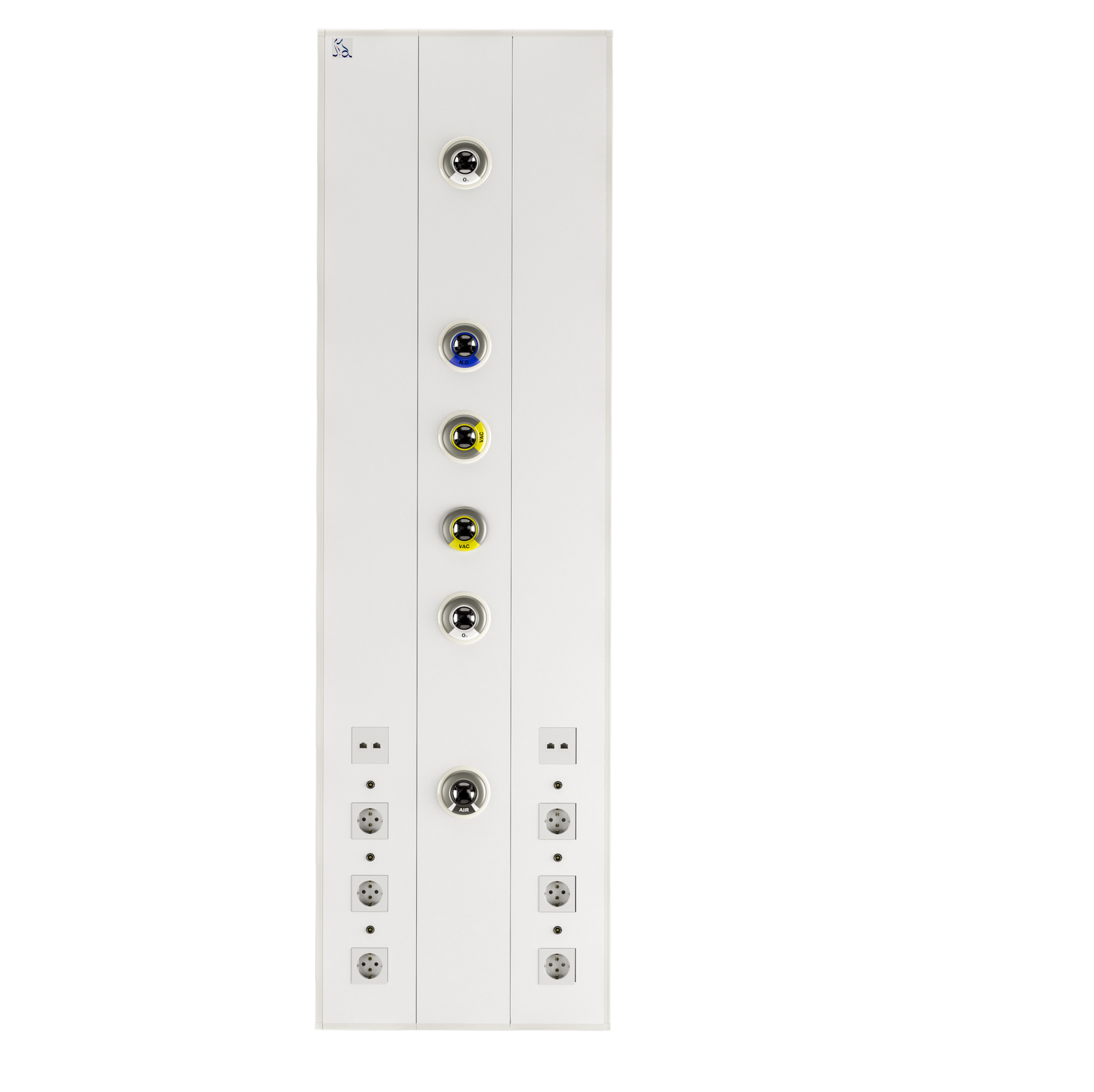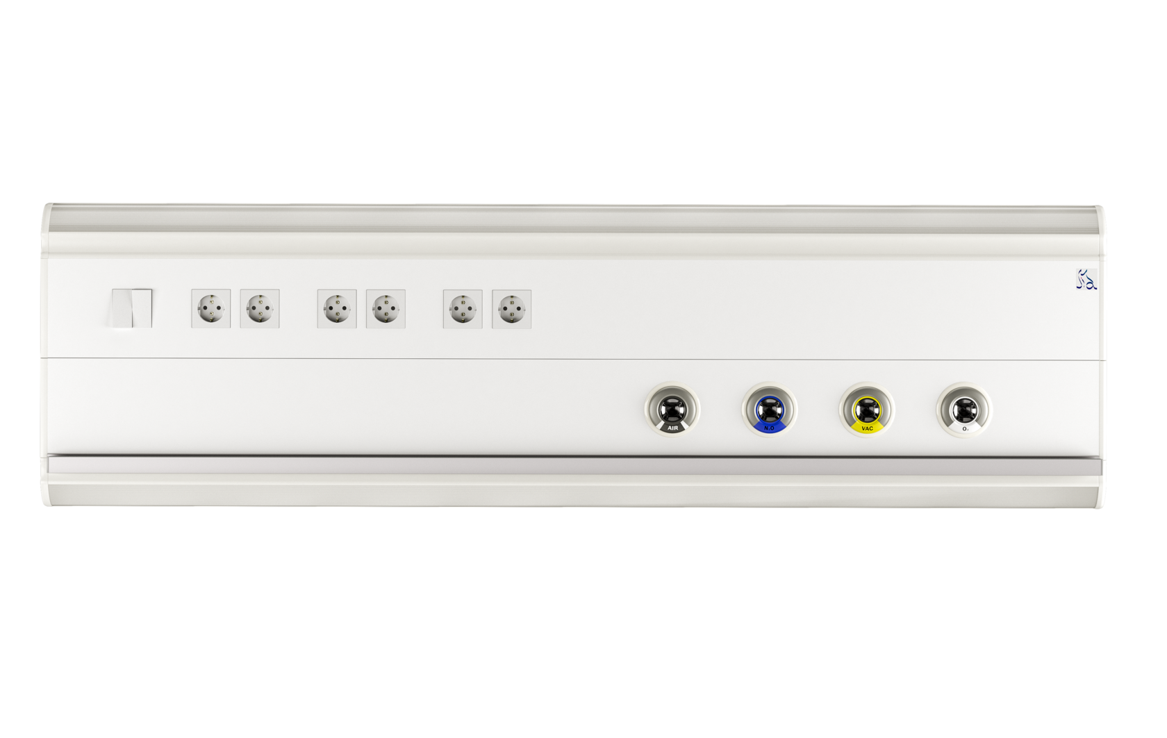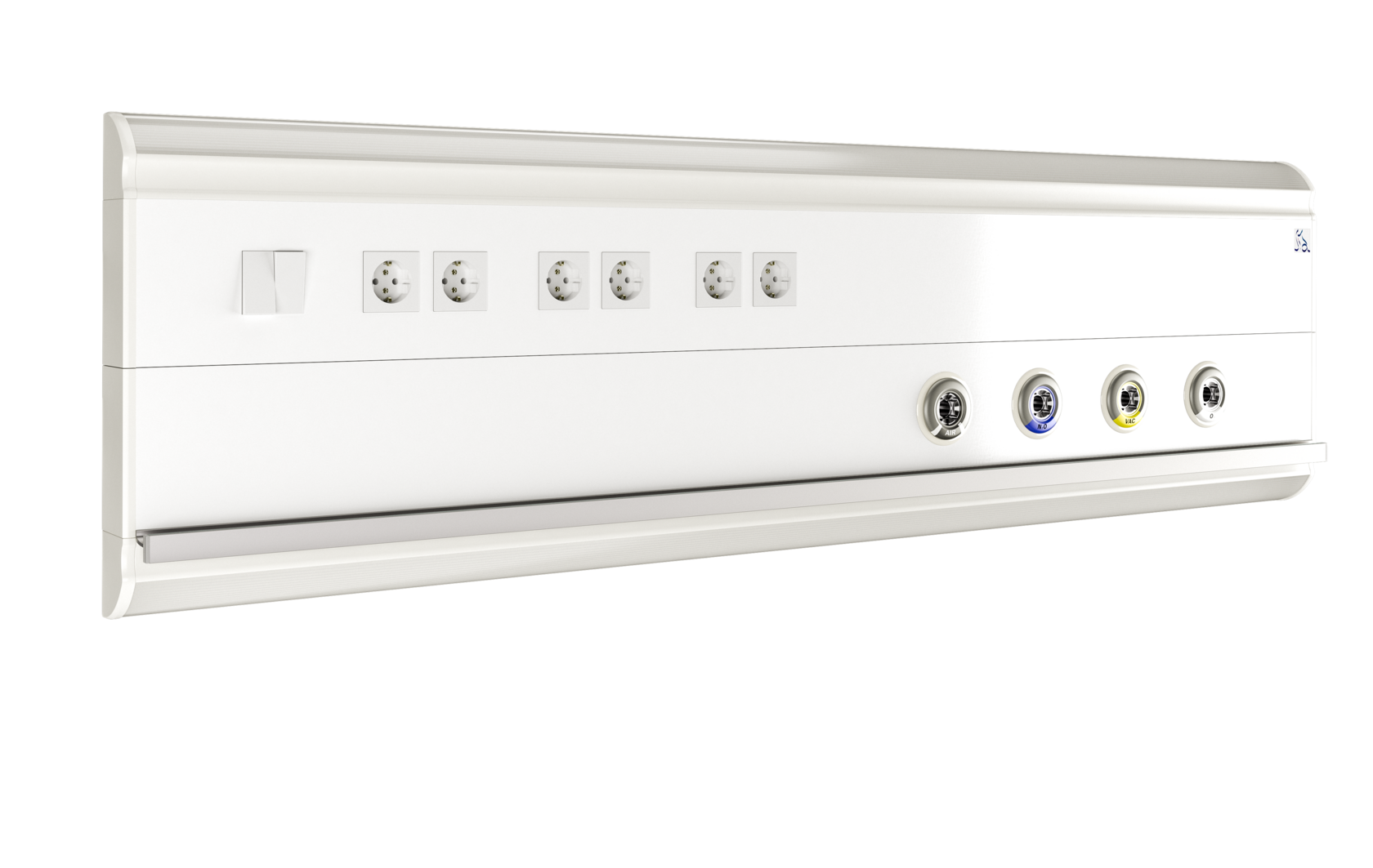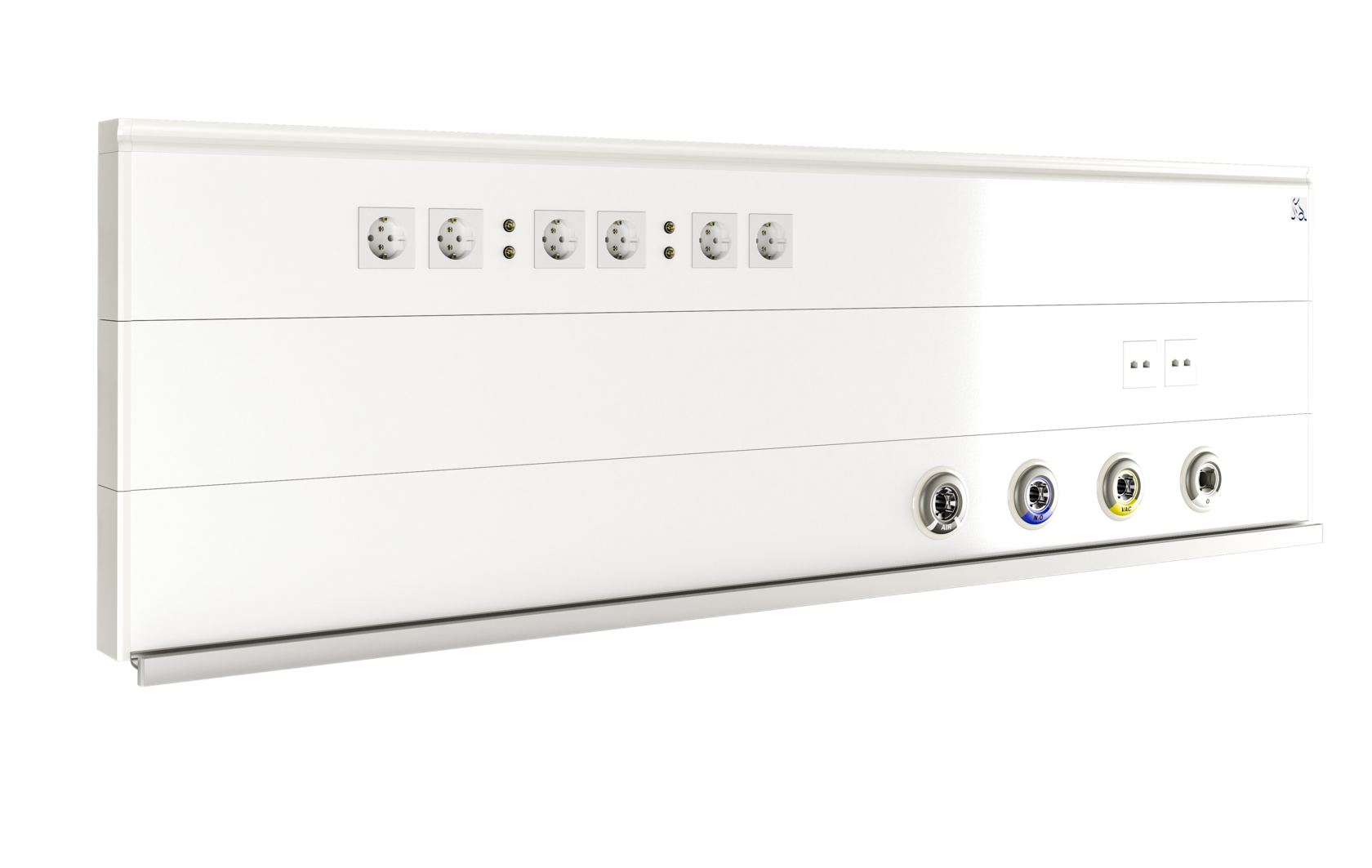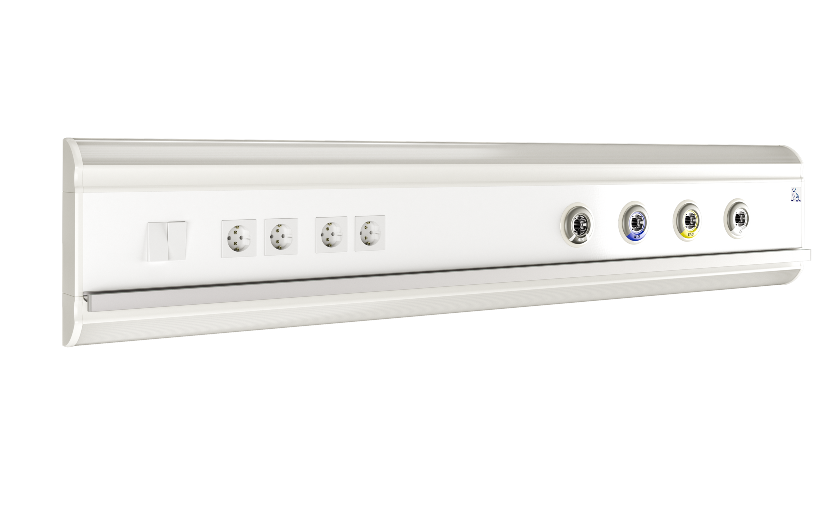 Консоль Mercury H1 предназначена для стандартных палат. Она может дополнительно оснащаться электрическими розетками, клапанами с выводами медицинских газов, а также светильниками по верхнему и нижнему контуру консоли